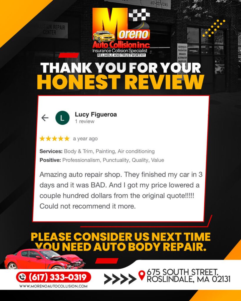 If you are ever involved in an accident, before you call your insurance, call Moreno Auto Collision!